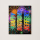 Este excitante y vibrante diseño de rompecabezas con temática de cumpleaños presenta el mensaje "FELIZ CUMPLEAÑOS, JEFFERY" con un colorido patrón de gradiente inspirado en el espectro de arcoiris, y un divertido patrón inspirado en fuegos artificiales de celebración. Un rompecabezas vibrante como este podría ser usado para enviar un mensaje de bienvenida de cumpleaños a alguien llamado Jeffery. [~Z0000465]