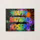 Este divertido y emocionante diseño de rompecabezas con temática de cumpleaños tiene el mensaje "FELIZ CUMPLEAÑOS, JOSEPH" con un colorido patrón de gradiente inspirado en el espectro de arcoiris, y un animado estallido de fuegos artificiales de celebración inspirado en el patrón de fondo. Un acertado rompecabezas como este podría ser una manera divertida de enviar deseos de cumpleaños a alguien llamado Joseph. [~Z0000465]