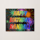 Este divertido y emocionante diseño de rompecabezas con temática de cumpleaños tiene el mensaje "FELIZ CUMPLEAÑOS, RANDALL" con un colorido patrón de gradiente inspirado en el espectro de arcoiris, y un vibrante estallido de fuegos artificiales de celebración inspirado en el patrón de fondo. Un rompecabezas colorido como este podría ser una manera divertida de enviar saludos de cumpleaños a alguien llamado Randall. [~Z0000465]
