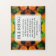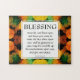 Un elegante JIGSAW BENDICIÓN de 252 PIEZAS con texto inspirador basado en la bendición bíblica en los números 6:24-26, que comienza EL SEÑOR BENDIGA Y TE MANTIENE. El diseño muestra un vibrante patrón naranja, amarillo y verde en el fondo. El versículo de la Escritura es PERSONALIZABLE para que puedas cambiar la versión de la Biblia si lo deseas (algunas personas prefieren NIV, NKJV, KJV, etc). Versión de 1014 piezas listada por separado.