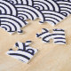 Antiguo Seigaiha japonés o cuevas seikaiha - Este clásico patrón de olas anticuadas azules y blancas del océano japonés es una antigua representación japonesa del mar. Se ha usado en viejos mapas de Japón, y también como diseño kimono. El diseño de las olas en azul y blanco simboliza el poder y la resistencia en la cultura japonesa. Son círculos concéntricos en capas que crean arcos y se superponen.