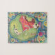 Piece together a moment of joy with Omohide Garasu ("Little Glass Memory"), a heartwarming Japanese Nihonga artwork that captures a playful scene between a young maiden in a vibrant kimono and her curious cat. Surrounded by whimsical patterns like floating glass marbles, the image evokes a dreamy, nostalgic atmosphere.