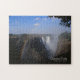 Las cataratas Victoria Falls 2 fotos horizontales y regalos presentan una hermosa fotografía en color de las cataratas Victoria o Mosi-o-Tunya (el humo que tiembla) con un arco iris lanzando a un brillante cielo azul de África, tomada por Kurt Keller con una cámara de 35 mm en Zimbabue mientras estaba en un Safari africano. Las Cataratas Victoria es una de las siete maravillas naturales del mundo. Es una majestuosa cascada en el río Zambezi en el sur de África entre los países de Zambia y Zimbabue.