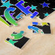 Este vibrante y divertido diseño de rompecabezas con temática de cumpleaños presenta el mensaje "FELIZ CUMPLEAÑOS, PAIGE" con los personajes que tienen un coloreado patrón de gradiente inspirado en el espectro de arcoiris, además de un patrón de fondo de estrellas animadas. Un acertado rompecabezas como este podría ser usado para enviar un mensaje de bienvenida de cumpleaños a alguien llamado Paige. [~Z0000468]