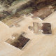 Puzzle Paisaje con una iglesia, cabaña, aldeanos y