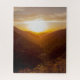 Impresionante fotografía de la puesta de sol sobre un paisaje montañoso.