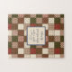 Personalice este rompecabezas con patrones de mosaico de estilo vintage con su propio texto para un regalo único. Creado en tonos rojos oscuros, crema y marrón para un aspecto rústico con detalles de puntos falsos zig-zag. Un producto dulce para edredones, costureras o cualquier persona con gusto por los buenos puzzles.