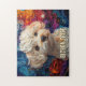 Este es un retrato de perro colorido y abstracto de una raza de Bichon Frise al estilo del arte en el tejido de papel. Este es un gran rompecabezas para los amantes del perro y los dueños de perros de Bichon Frise.