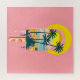 Podrá sumergirse en un paraíso soleado, con una palmita que se derrite sobre un fondo de sol radiante, palmeras que se balancean y una tranquila escena de playa. Verano capturado en el arte.