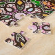 La artista de San Diego, Julie Ann Stricklin, pintó a mano una serie de mandalas de vidrio manchadas que se han colocado juntas para crear un enigma divertido y esperanzador para toda la familia.