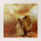Una hermosa pareja de leones con un fondo de puesta de sol en este asombroso rompecabezas.