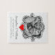 Cree su muy poseen, rompecabezas único del recuerdo usando su propia foto del boda. El área de marco rizada de la plantilla de la foto del doodle del estilo lindo del garabato swirly destaca su fotografía, si esté en blanco y negro o a todo color. El pequeño corazón rojo en el centro añade un estallido adicional del color, y hay tres campos de encargo del texto para sus nombres, fecha de la boda, y ubicación de la ceremonia de boda.