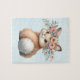 Enciende tu pequeña con este rompecabezas de un conejito dulce que lleva un guirnalda floral.