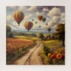Rompecabezas de Paseo en Globo Aerostático sobre el Campo. © Jigsaw Wonderland en Zazzle. Una hermosa escena de globos aerostáticos flotando sobre el campo con nubes en el fondo.