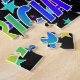 Este emocionante y animado diseño de rompecabezas con temática de cumpleaños muestra el mensaje "FELIZ CUMPLEAÑOS, PATRICIA" con los personajes que tienen un colorido patrón de gradiente inspirado en el espectro de arcoiris, junto con un divertido campo de patrones de fondo de estrellas. Un rompecabezas vibrante como este podría ser una manera divertida de reconocer el cumpleaños de alguien llamado Patricia. [~Z0000468]