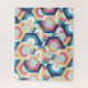 Patrón geométrico vibrante de verano, compuesto por hexágono, cuadrados, cubos, líneas triángulos y rayas y trazos dorados. Este ilustracion de patrón gráfico abstracto, simétrico, creativo, de moda y de moda decorativo es ideal para la decoración y el uso cotidianos. Lleno de amarillo mostaza, mango helado, coral vivo, panqueque de arándano azul, cristal de carnaval, azul acuático, azul oscuro y blanco brillantes colores alegres. Un diseño elegante, moderno, alegre, alegre, con una imagen original de obra de arte.