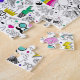 ¡Mucha diversión en una sola impresión! Este patrón es un bosquejo de personalizado blanco y negro con toques coloridos por todas partes. Funcionan piezas como nubes de arco iris, flamencos, donuts, quequitos y helados, íconos de los 80, patinetas, anclas, zapatillas, cactus, bigotes, cámaras y MUCHO MÁS!!! Ideal para un fiesta de los 80, o sólo una tonelada de diversión diaria.