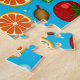 Hermoso rompecabezas de frutas con fondo azul, limón, Naranja, fresa y rompecabezas de Kiwi, patrón de frutos cortos coloridos con fondo azul, lémonas, Naranjas, fresas y rompecabezas de Kiwis,