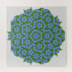 Este diseño presenta un elegante patrón de interbloqueo de dos formas diferentes de rhombus en verde y azul. Produce un hermoso efecto geométrico que es una alegría de ver. Los patrones de azulejos de las penrose llevan el nombre del matemático y físico Roger Penrose de Oxford, que trabajó en ellos en los años 70; en 2020, ganó el Premio Nobel de Física.