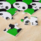 Un lindo oso panda, patrón de estilo personalizado kawaii. Diseño original en blanco y negro con fondo verde.