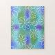 Un diseño de patrones florales, este rompecabezas muestra dibujos de flores sobre un fondo azul y verde. Esto es perfecto para cualquiera que esté buscando un rompecabezas desafiante. ¡Descúbrelos!