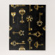Patrón incomparable de llaves antiguas, doradas y de silueta sobre fondo negro.