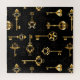 Patrón incomparable de llaves antiguas, doradas y de silueta sobre fondo negro.