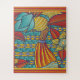 Rompecabezas contemporáneo con patrón en rojo, oro, azul. Ideal para los amantes del rompecabezas, las actividades de los días lluviosos, los regalos y más.