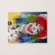Un payaso alegre y sonriente de colores primarios brillantes iluminará tu estado de ánimo.