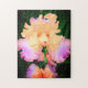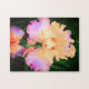 Este rompecabezas presenta una foto de un hermoso melocotón e iris morado.