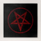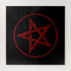 Pentagrama rojo, invertido, texturado en círculo, sobre fondo negro. Símbolo oculto. 666