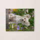Un blanco poner crema de pelo largo joven coloreó el perro que se sentaba en un jardín floreciente, foto de la chihuahua tomada por Katho Menden. Este juego del rompecabezas de la foto del mascota es una idea del regalo para los amantes del perro. http://www.zazzle.com/kathom_photo
