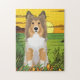 Perro Collie en un campo de flores en una granja. Muchos diseños de mascotas y paisajes en mis tiendas. Agrega este diseño a otros productos. Agregar texto.