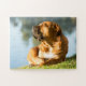 Rompecabezas de un perro de Boerboel tirado a orillas del río, disfrutando del sol de la madrugada.