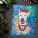 Perro de raza Bull Terrier Navidad presenta una acuarela de un Bull Terrier con un sombrero rojo de Santa, un disfraz de Navidad para perros adorable y una acuarela de galaxia.