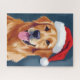 Perro de raza Golden Retriever Alegre | Rompecabezas de Navidad de Perro con sombrero de Santa