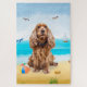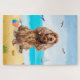 El perro lindo sentado en la playa es un regalo perfecto para alguien que ama esta raza de perro.