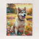 Perro Husky Siberiano sentado en una pradera de flores. Rompecabezas, planificadores, cuadernos adornos medias más con este diseño en mis tiendas. Muchos diseños de mascotas y paisajes en mis tiendas. Agrega este diseño a otros productos. Agregar texto.
