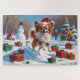 Puzzle Perro Papillon corriendo en nieve con Gorra Navida