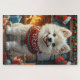 Puzzle Perro samoyado con Navidades regalos chimenea