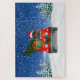 El perro de Staffordshire Bull Terrier en la nieve con sombrero de Santa y regalos de Navidades es una idea de regalo perfecta para Navidades para alguien que ama esta raza de perro.
