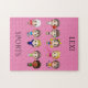 Rompecabezas con pequeños personajes de caricatura y nombre personalizado del niño.
