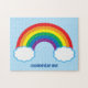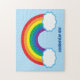 Rompecabezas del arcoiris bonito con un bonito fondo azul del cielo con tu propio texto personalizado.