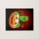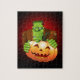 Feo Halloween Monstruo Frankenstein sosteniendo una calabaza hecha originalmente en Vector Technique