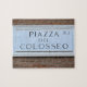Este cartel espantado marca la plaza donde se encuentra uno de los lugares históricos más famosos de la antigua Roma... el Coliseo. Desafíe su rompecabezas haciendo habilidades mientras sueña o recuerda su visita a la Piazza del Colosseo.