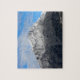 Este diseño de rompecabezas presenta una foto de un pico de montaña gris y rocoso, junto con un cielo azul turbio.
