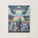 Puzzle Pie grande, alienígena y unicornio con un OVNI