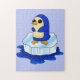Un adorable pingüino de bebé parado en el diseño del hielo.