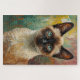 Sumérjase en el arte con este impresionante rompecabezas con un majestuoso gato siamés con ojos azules claros, pintado en un vibrante y texturado estilo de pintura al óleo. Una creación única que combina la elegancia felina con el arte contemporáneo, perfecto para los amantes del gato y los amantes del puzzle. Disfrute de una relajante actividad creativa y de una refinada pieza que podrá enmarcar una vez finalizada. Una creación de ZR21Diseños.
