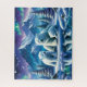 Una madre oso polar y sus dos cachorros están sentados en un banco cubierto de nieve frente a un lago congelado. Los pinos recubiertos de nieve bordean el fondo bajo un cielo nocturno lleno de las Luces del Norte. Varios pequeños pájaros descansan a orillas del lago. El reflejo de los osos y de la aurora boreal brilla en el agua.